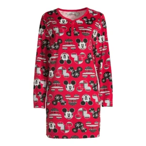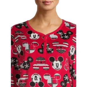 Características de la camisa de dormir: Tela de terciopelo suave; ajuste relajado; escote Henley de tres botones; jersey; manga larga; estampado allover