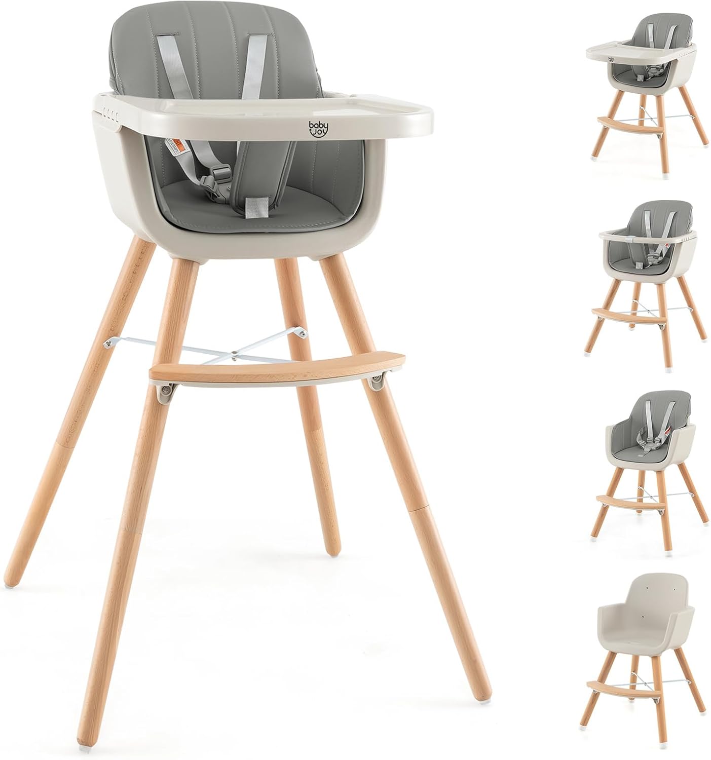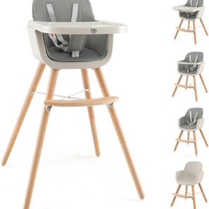 Materiales Seguros y Duraderos: Fabricada con PP y PE de grado alimenticio, esta silla alta es atóxica y libre de olores. Las patas están hechas de madera de haya de alta calidad, un material robusto y duradero con una excelente resistencia a la presión. El suave cojín de PU y la barra de seguridad frontal garantizan una experiencia de asiento cómoda para el bebé.