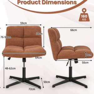 Diseño multifunción: Esta silla de patas cruzadas cuenta con un diseño fácilmente ajustable que permite una rotación de 360° y ajustes de altura de 76 a 90 cm. La perilla de ajuste de tensión permite un balanceo de 100° a 120°, lo que le ayuda a encontrar su postura ideal sin esfuerzo.