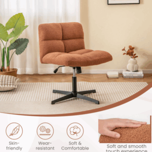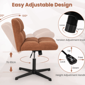 Cómoda silla con patas cruzadas: Esta silla de oficina cuenta con un asiento amplio que permite sentarse con las piernas cruzadas. Su tejido de imitación de lana de cordero ofrece un tacto suave y liso, lo que proporciona una experiencia de asiento lujosa y cómoda.