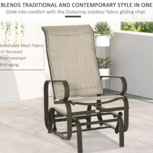 Mecedora Acogedora: Nuestra mecedora individual para exteriores cuenta con un respaldo de 71 cm de alto y un soporte cervical ergonómico que sobresale, lo que proporciona mayor comodidad a la parte superior del cuerpo.
