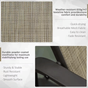 Tela de Malla: Nuestra mecedora para exteriores está fabricada con tela transpirable que te mantiene fresco en el calor del verano al dejar pasar el viento. Además, es resistente al agua y se seca rápidamente, lo que significa que no tendrás que esperar mucho después de la lluvia.