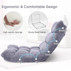 Bonito diseño: Hecho con tela de franela y relleno de espuma de alta densidad, esta silla ofrece comodidad y apoyo para los asientos en el suelo.