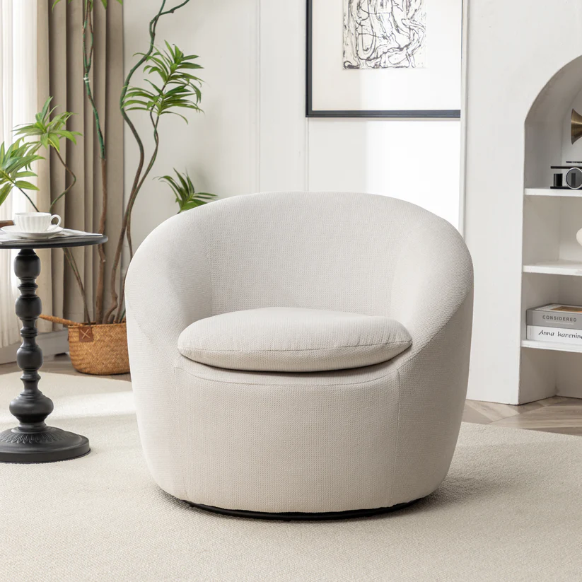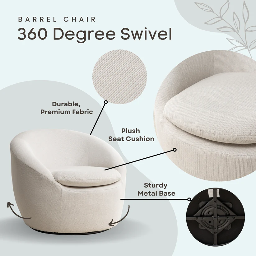 El sillón barril giratorio Winnie de Roundhill Furniture es elegante y cómodo, ideal para diversos entornos. Con su diseño amplio y redondeado, aporta estilo y confort a su hogar. Diseñado para durar, este sillón cuenta con una base redonda de metal y un giro de 360°. Su construcción incluye tela bouclé fina y esponjas de alta densidad, lo que garantiza un soporte superior y una comodidad inigualable. Los reposabrazos acolchados y el respaldo redondeado ofrecen horas de relajación y sirven como punto focal.
