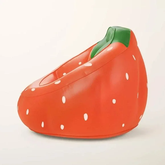 * Asiento inflable de fresa en rojo * Hecho de PVC * Uso interior/exterior * Carga máxima 260 libras * Incluye kit de parche de reparación * Instrucciones también incluidas *