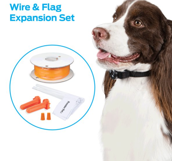 El Premier Pet™ Wire and Flag Expansion Set™ le permite expandir su sistema Premier Pet™ In-Ground Fence™ actual. Con 500 pies adicionales de cable, 50 banderas de límites, dos cápsulas de empalme y dos tuercas para cables, podrá expandir su sistema de contención para cubrir hasta un acre, cuando se agregue al cable y las banderas que ya se incluyen con su sistema de cercas. Agregar dos juegos de expansión le permitirá expandir su área de contención hasta dos acres, y agregar tres juegos expandirá su área de contención hasta el máximo de 5 acres.