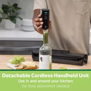 El único sistema de sellado al vacío que incluye una unidad portátil inalámbrica desmontable: Selle al vacío, selle con calor, marine y más fácilmente, dentro y alrededor de la cocina (no necesita conexión de manguera).