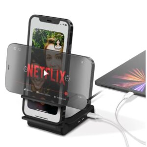El soporte plegable de diseño delgado le permite ajustarse al ángulo de visión perfecto o plegarse para llevarlo a cualquier lugar, nunca más sin carga.