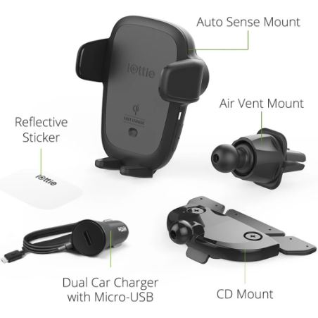 El iOttie Auto Sense Air Vent & CD Slot Mount es un avanzado soporte de carga inalámbrica automática para automóvil diseñado para maximizar la conveniencia y la potencia en la carretera. Monta smartphones al instante con la función de detección automática que funciona con un sensor de proximidad. Simplemente coloque el dispositivo cerca de la base de montaje para acoplar el servomotor, y los brazos se cerrarán automáticamente para asegurar el dispositivo.