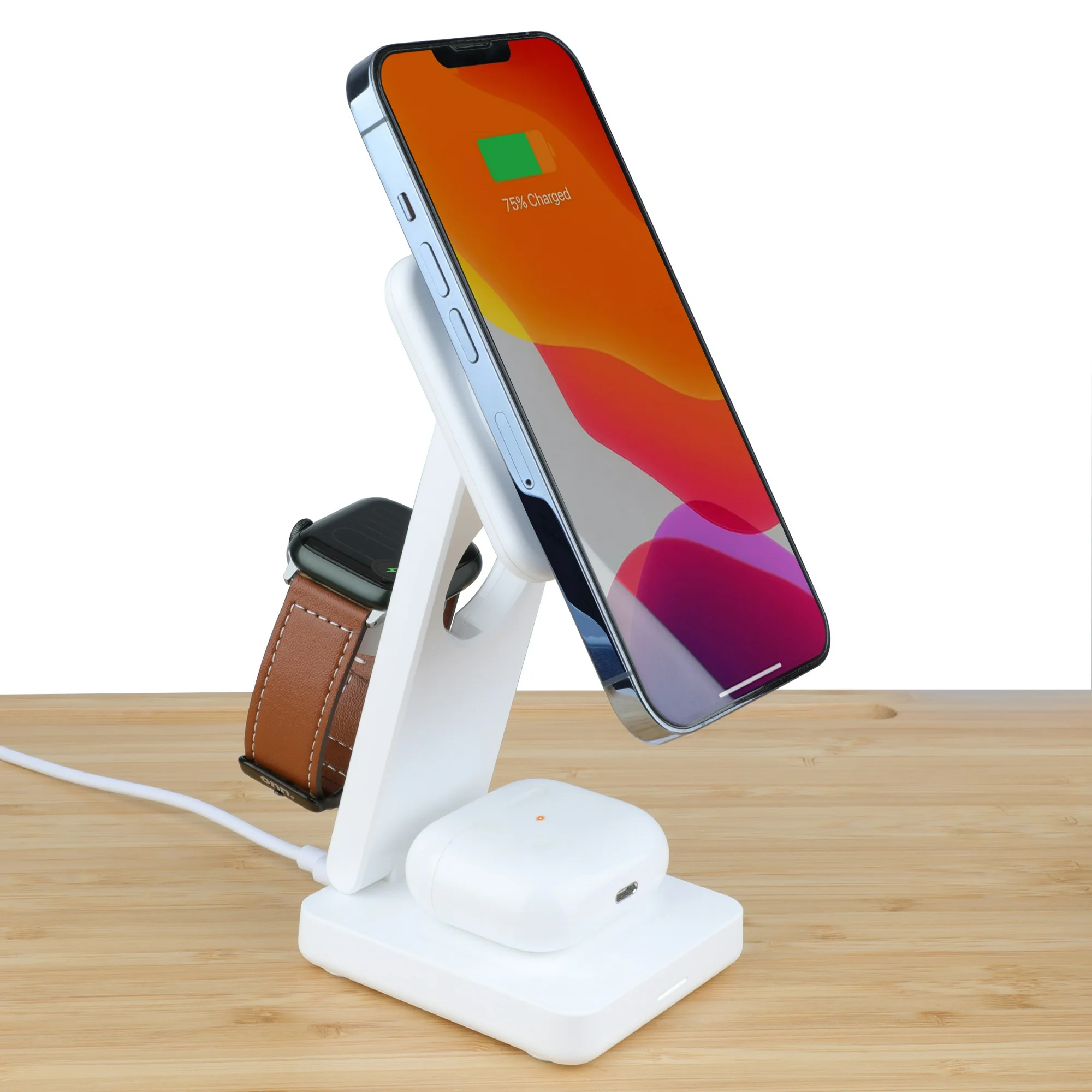Manténgase encendido sobre la marcha con el cargador inalámbrico compacto 3-IN-1, diseñado para cargar de manera eficiente varios dispositivos a la vez. Esta versátil estación de carga cuenta con carga inalámbrica en tu smartphone, Apple Watch y Apple AirPods, lo que te permite mantener todos tus dispositivos esenciales cargados simultáneamente sin el desorden de múltiples cables. Compacta, esta estación de carga es ideal para uso doméstico o en la oficina. Su diseño elegante y que ahorra espacio lo hace perfecto tanto para hombre como mujeres de todas las edades que necesitan una solución de carga confiable y conveniente. Experimente una energía rápida y confiable donde quiera que vaya con este cargador inalámbrico compacto todo en uno.