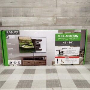 El SANUS VuePoint FLF322KIT es un kit completo todo en uno para un acabado de aspecto profesional. El versátil soporte de pared de movimiento completo se adapta a la mayoría de televisores de pantalla plana de 42 «a 80» de hasta 125 libras. Su rango completo de movimiento permite una extensión suave hasta 22 «desde la pared sin el uso de herramientas, movimientos de inclinación, giro y balanceo. El FLF322KIT se inclina + 5º / 15º con el toque de un dedo, lo que facilita la reducción del deslumbramiento.