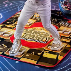 El tapete de juego Dance Mixer Rhythm Step de FAO Schwarz es una forma divertida de mejorar tus movimientos de baile y ponerte en movimiento. Solo sigue las luces en el pad mientras se encienden y apagan y sigue moviéndose con la música. Hay 5 pistas de baile incorporadas para elegir, ¡simplemente suba el volumen y comience su fiesta de baile! Puedes elegir entre «KEEP THE BEAT» o «FREESTYLE» en el tapete de juego Dance Mixer Rhythm Step. «KEEP THE BEAT» te lleva a través de una rutina de baile, y «FREESTYLE» se trata de soltarte y crear tus propios movimientos.