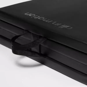Esterilla de vinilo para ejercicios hecha de espuma densa y gruesa con revestimiento exterior de vinilo fácil de limpiar para ejercicios en casa. Diseño cuádruple con asa superior para fácil almacenamiento y transporte. Capacidad para conectar varias esterillas para acomodar el espacio y adaptarse a diversas necesidades de entrenamiento.