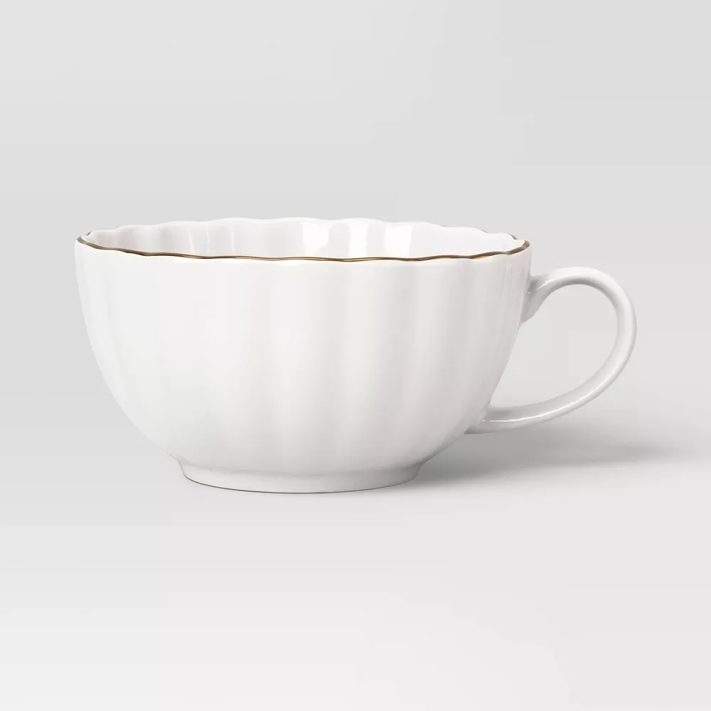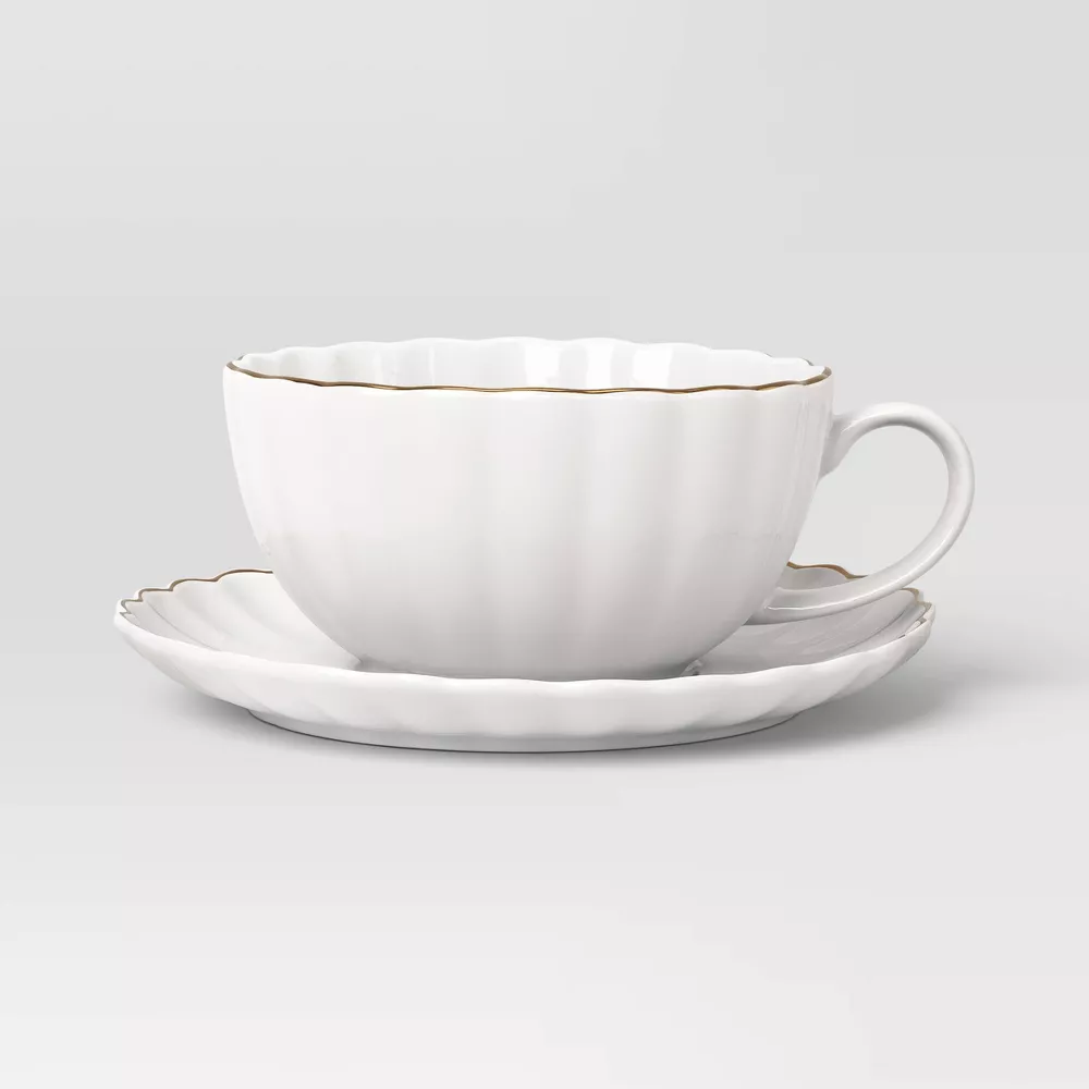 Taza para té de gres con plato de 13.1 oz y borde dorado — Threshold