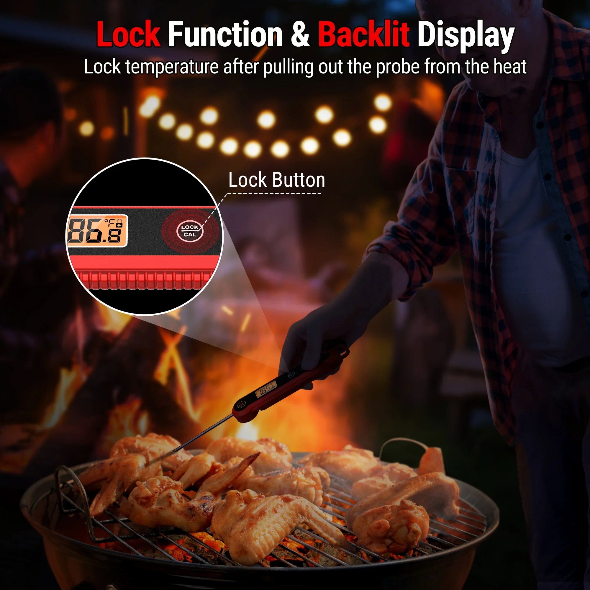 : Termómetro de parrilla cuenta con pantalla LCD retroiluminada para que pueda ver la pantalla en cualquier condición de luz
