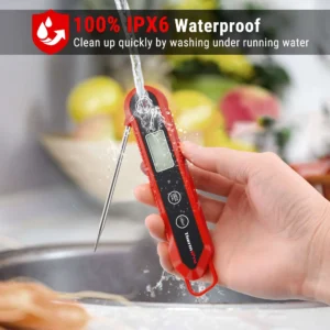 : El termómetro para cocinar tiene un rango de temperatura de -58 – 572 grados Fahrenheit (-50 – 300 grados Celsius); alta precisión a 0.9 grados Fahrenheit; Perfecto para cocinar en interiores al aire libre, a la parrilla y BBQ