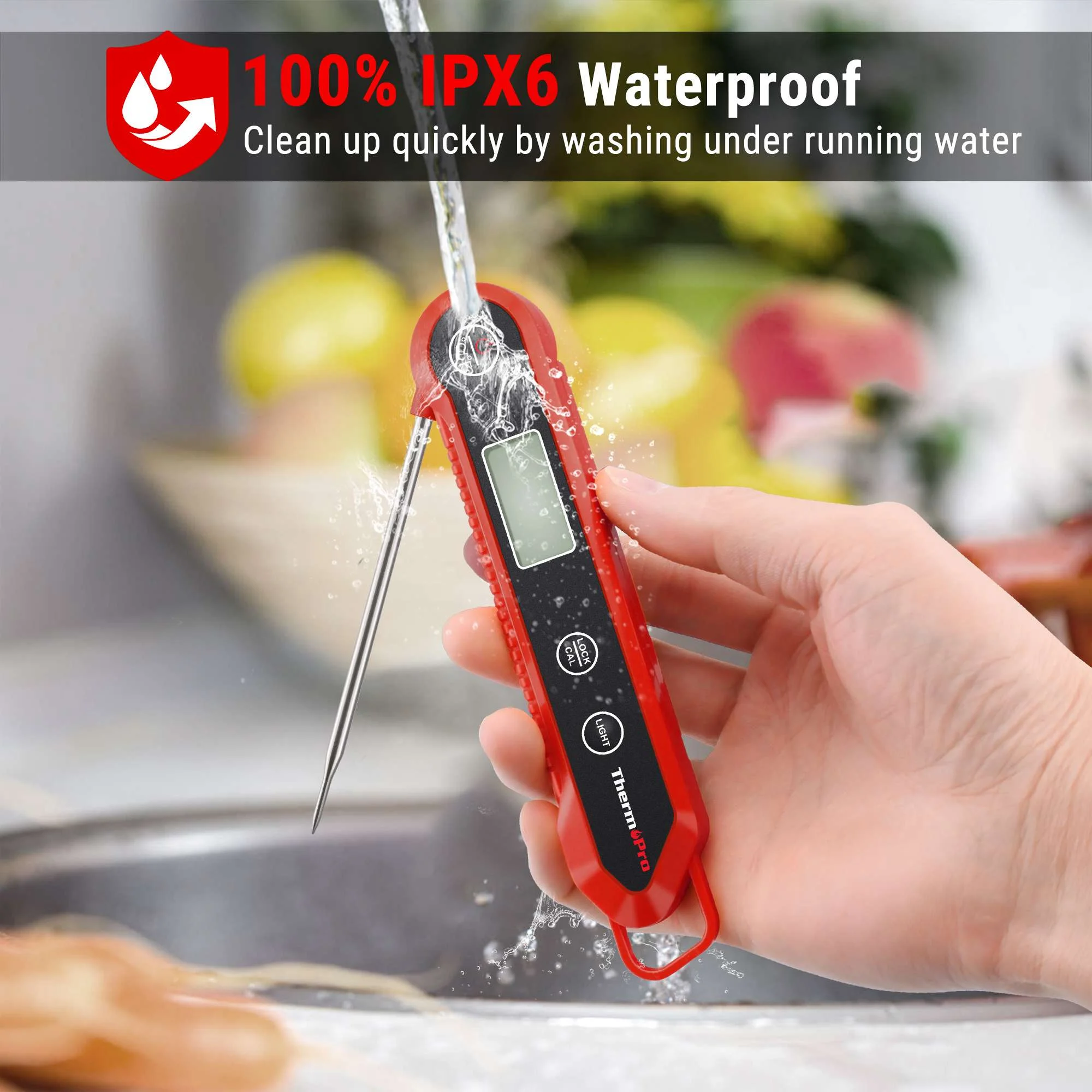Cocinar bien la carne siempre es posible. Deje que el ThermoPro TP03HW lo haga por usted. El termómetro de lectura instantánea plegable impermeable TP03HW le dará una temperatura precisa en cuestión de unos segundos cada vez. Una herramienta imprescindible para cocineros experimentados e inexpertos por igual.
