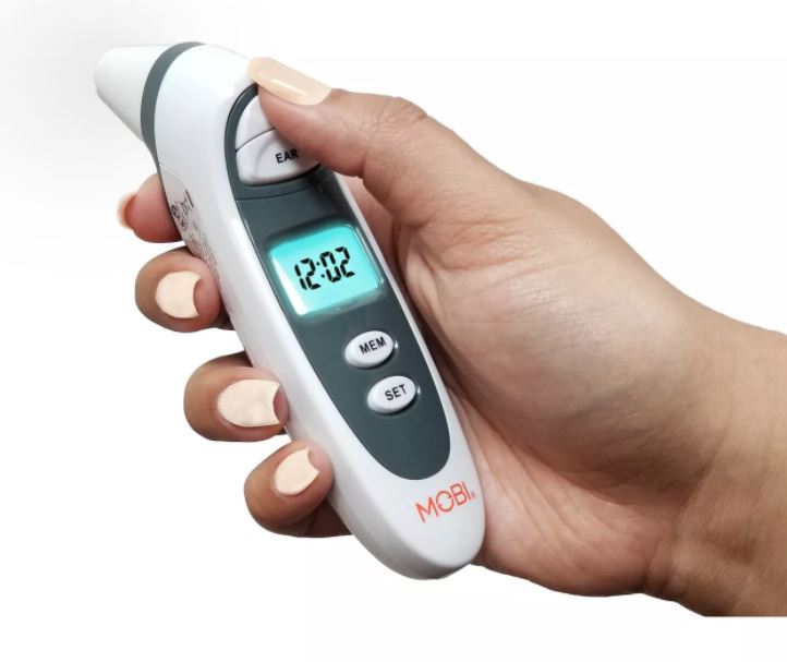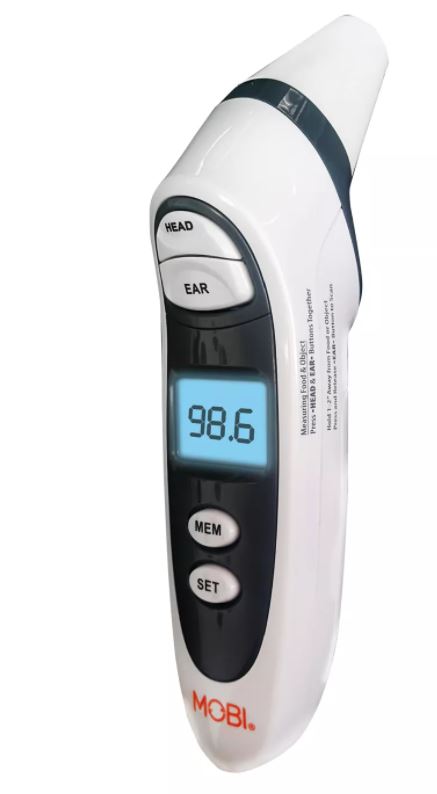 Llevando el de su hijo, ¡o el suyo! – la temperatura es muy sencilla con el termómetro de oído y frente MOBI DualScan Prime. Este termómetro se puede utilizar de dos formas diferentes, ofreciéndole opciones para adaptarse a cualquier edad. Use el escaneo de la frente en bebés o niños pequeños que se mueven, luego úselo como termómetro de oído para niños mayores y adultos. Con solo presionar un botón, el termómetro entrega una lectura de temperatura en solo un segundo. El termómetro se puede configurar para proporcionar lecturas en Fahrenheit o Celsius, y los números digitales contra una pantalla LCD iluminada facilitan la lectura de los resultados incluso si se verifica la temperatura de un niño dormido en la oscuridad. Una opción de recuperación de memoria le permite ver las últimas lecturas para que pueda realizar un seguimiento de los cambios de temperatura.