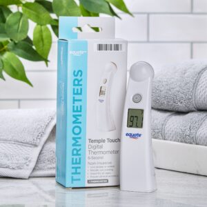 El termómetro digital Equate Temple Touch utiliza un sensor único que muestrea rápidamente el calor que fluye desde los vasos sanguíneos a la superficie de la piel y lo traduce con precisión a la temperatura corporal. Con una precisión clínica comprobada, este termómetro digital temple touch no es invasivo y es bueno para todas las edades. Obtendrá una lectura precisa de la temperatura en seis segundos, y puede recordar su última lectura.
