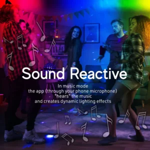 Modo Música: Utiliza el micrófono del teléfono para sincronizar las luces con la música y los medios de comunicación, produciendo efectos de iluminación reactivos al sonido.