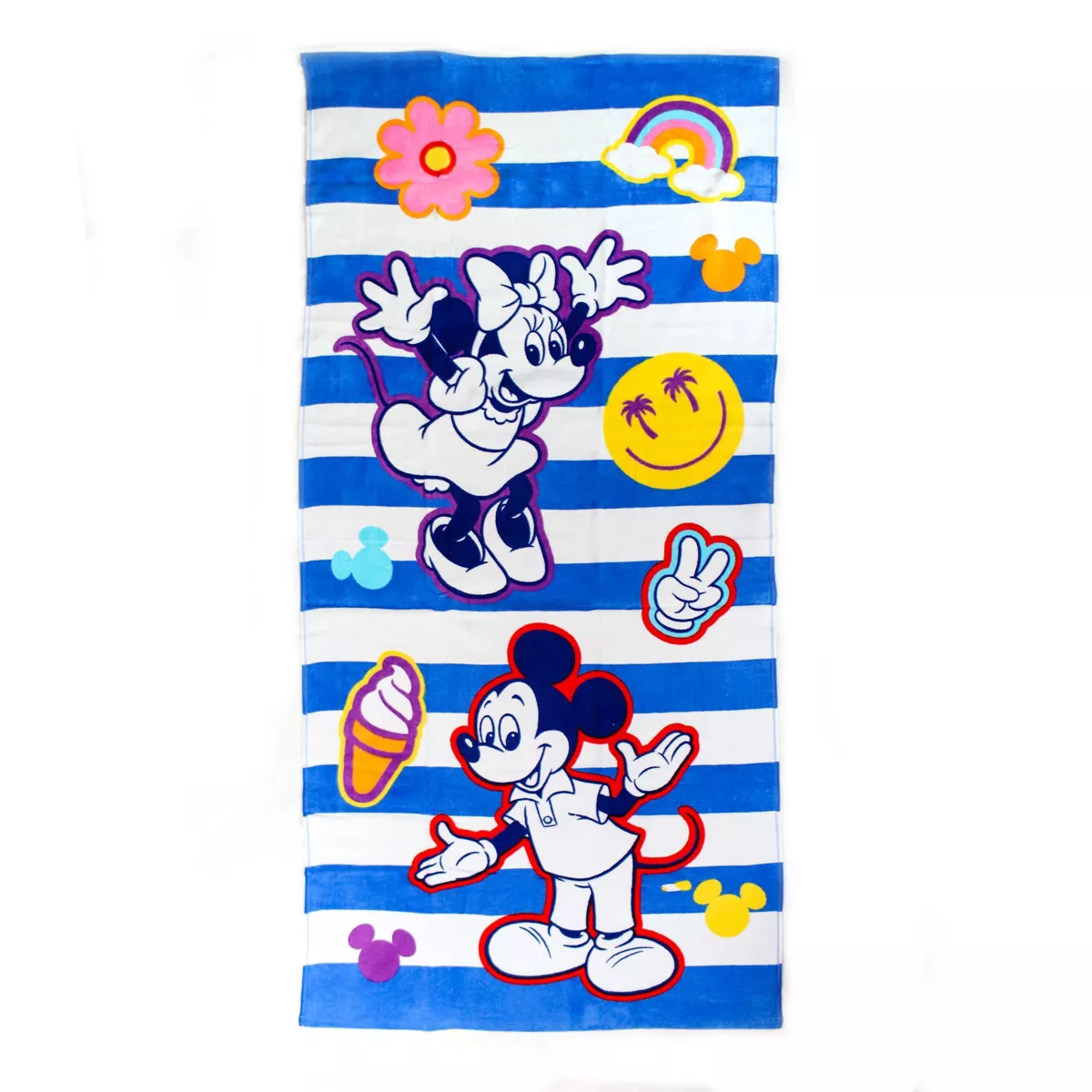 Minnie Mouse y Mickey Mouse siempre están listos para un día de playa. Ahora tu pequeño podrá llevar a sus personajes favoritos de Disney a la playa o al parque acuático. Esta toalla forma parte de una colección más amplia de Disney, disponible aquí en Target. Mide 147 cm de largo por 71 cm de ancho. Se puede lavar a máquina con agua fría y secar en secadora a baja temperatura. ¡No te la pierdas para la temporada de playa!