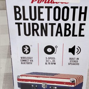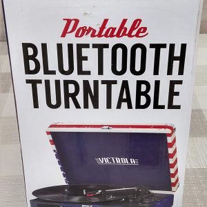Plataforma giratoria de 3 velocidades (33 1/3, 45, 78 RPM) y conector auxiliar de 3,5 mm para reproducir música desde cualquier dispositivo que no sea Bluetooth. El diseño portátil y el asa de transporte con altavoces estéreo incorporados permiten melodías donde quiera que vaya. Entrada auxiliar RCA para agregar sus propios altavoces externos y conector para auriculares incluido. Mide 13.9 «x 10.1» x 5 «. Victrola Bluetooth Reproductor portátil de maletas con tocadiscos de 3 velocidades, bandera de EE. UU.