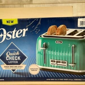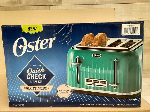- La tostadora azul turquesa de 4 rebanadas de la colección Oster Impressions presenta un hermoso acabado texturizado con detalles cromados y una palanca Quick Check para que pueda verificar las tostadas a mitad del ciclo sin interrumpir el tostado.