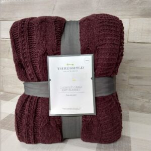 La manta tejida de chenilla te mantendrá abrigado durante cualquier temporada El patrón de tejido de cable agrega un agradable toque de textura y calidez. Se puede usar como un acento acogedor o una cubierta para acurrucarse mientras descansa. Agregue una capa de comodidad y comodidad a su espacio con esta manta de chenilla de punto de cable de Threshold.