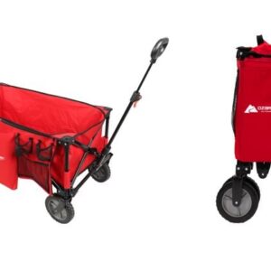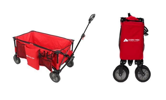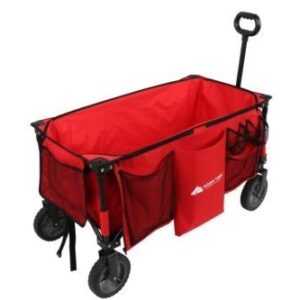 Este Ozark Trail Folding Wagon es perfecto para transportar todos sus elementos esenciales alrededor del campamento. Construido con un marco de acero duradero y tejido de doble capa, puede manejar hasta 225 libras. Puede guiar fácilmente su carga con un mango ergonómico que se desplaza hasta donde lo necesita.