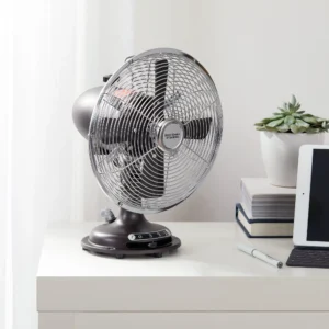 Mantenga el nivel de comodidad perfecto en casi cualquier habitación con el ventilador de mesa oscilante de metal retro de 8 pulgadas con cabezal inclinado de 3 velocidades Better Homes & Gardens. Diseñado para ocupar un espacio pequeño en escritorios, mesas, estantes y otros espacios, este ventilador mide 8.5″ de profundidad x 9.6″ de ancho x 12.2″ de alto. Este ventilador de aspecto vintage presenta tres velocidades, oscilación y un Cabezal inclinable para proporcionar el ángulo perfecto de circulación de aire. The Better Homes & Gardens Retro de 8 pulgadas con inclinación de metal. -El ventilador de mesa con oscilación de cabezal es perfecto para una amplia gama de espacios, incluidos dormitorios, salas de estar, estudios, salas de juegos, oficinas, aulas, dormitorios y más. Ventiladores de mesa de metal retro de 3 velocidades de 9″ y 12″ de Better Homes & Gardens.