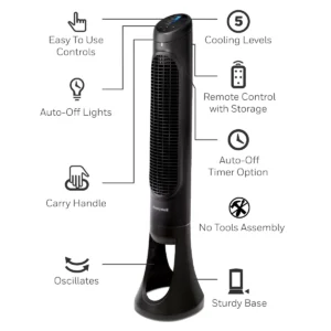Disfrute de una brisa fresca en cada habitación con el ventilador de torre silencioso de 40″ de Honeywell. Cuenta con cinco velocidades que son personalizables y van desde configuraciones de suspensión hasta configuraciones de enfriamiento eléctrico. Las luces en el panel de control se atenúan automáticamente después de 15 segundos, lo que lo hace ideal para la noche. Úselo también. Este ventilador de torre delgado tiene controles electrónicos con botones táctiles que son fáciles de usar y un nido para control remoto. El diseño delgado de esta unidad es conveniente porque no ocupa demasiado espacio en su hogar. El ventilador tiene una base resistente y duradera que es de fácil instalación y no requiere herramientas.