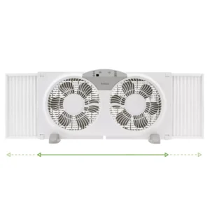 Este ventilador de dos aspas está diseñado convenientemente para adaptarse a la mayoría de las ventanas corredizas y de doble hoja e incluye 2 paneles extensores expandibles incorporados para un ajuste personalizado según sea necesario de 23,5″ a 35,5″.