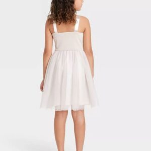 Tu hijo se destacará entre la multitud mientras se siente cómodo con este vestido de lentejuelas de Cat & Jack™. Este vestido estilo jersey tiene un corpiño sin mangas con tirantes anchos y un escote cuadrado, y está decorado con lentejuelas plateadas para que brille y brille. Se ensancha hasta convertirse en una falda de malla brillante, voluminosa y de color crema para el acabado perfecto para la fiesta.