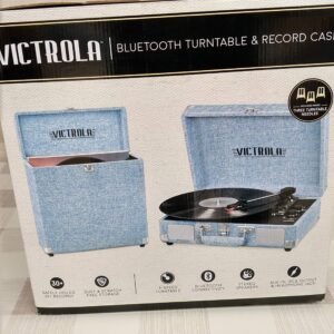 El tocadiscos de maleta portátil Victrola es un clásico absoluto y está repleto de características. Incluye tecnología Bluetooth incorporada para transmitir música de forma inalámbrica desde cualquier dispositivo con Bluetooth , giradiscos de 3 velocidades y conector auxiliar de 3,5 mm para reproducir música desde cualquier dispositivo que no sea Bluetooth .