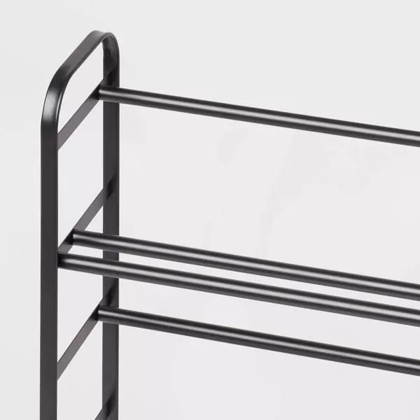 Ahorra espacio y organiza tu calzado fácilmente con el zapatero metálico para espacios pequeños de Brightroom™. Este zapatero cuenta con múltiples varillas para una apariencia elegante y admite varios pares de zapatos y sandalias. Fabricado con una estructura de metal, este zapatero negro combina a la perfección con una amplia gama de estilos de decoración.